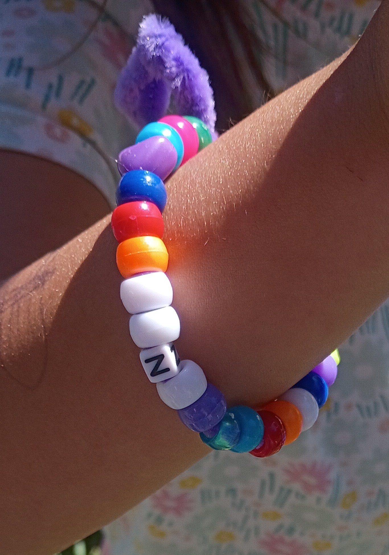 This simple Stay & Play is always popular, and the kids get really into it. It’s always great for building their fine motor skills. I just put out bowls of Pony beads and pipe cleaners and let them thread away. The grown-ups usually have to help them connect the ends of the pipe cleaner to make it into a bracelet at the end.