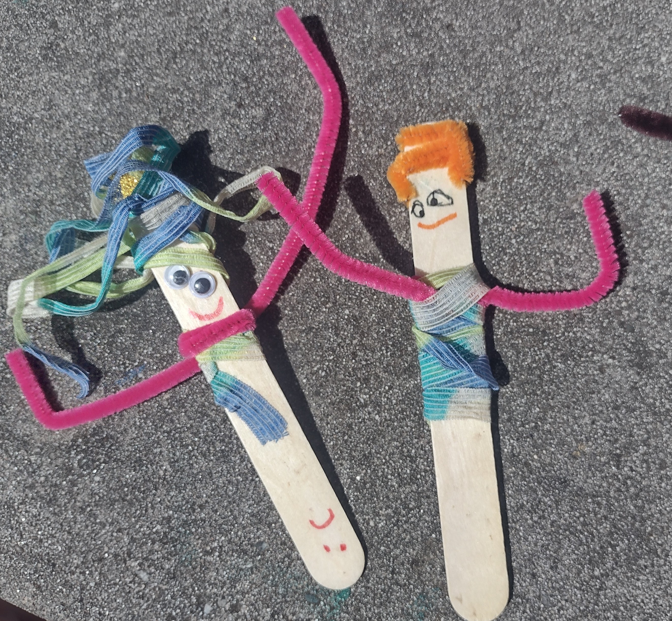 This was a simple idea that ended up being a lot of fun. I put out craft sticks, markers, pipe cleaners, yarn, googly eyes, scissors, and glue sticks for the kids to make their own “craft stick friends.” Both the kids and the grown-ups got really involved in making them, and they were all adorable!
