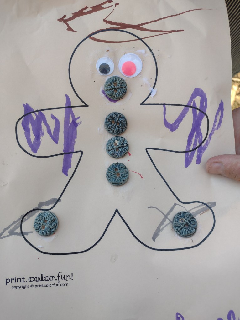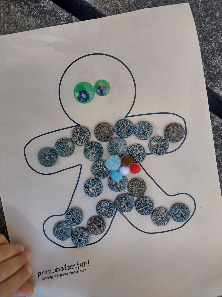 The kids always love decorating pictures with googly eyes, and other items, and this easy craft was no exception. I printed out this template from 4freeprintable.com and gave the kids markers, glue sticks, googly eyes, buttons, and pom-poms. All of their creations were unique and colorful!