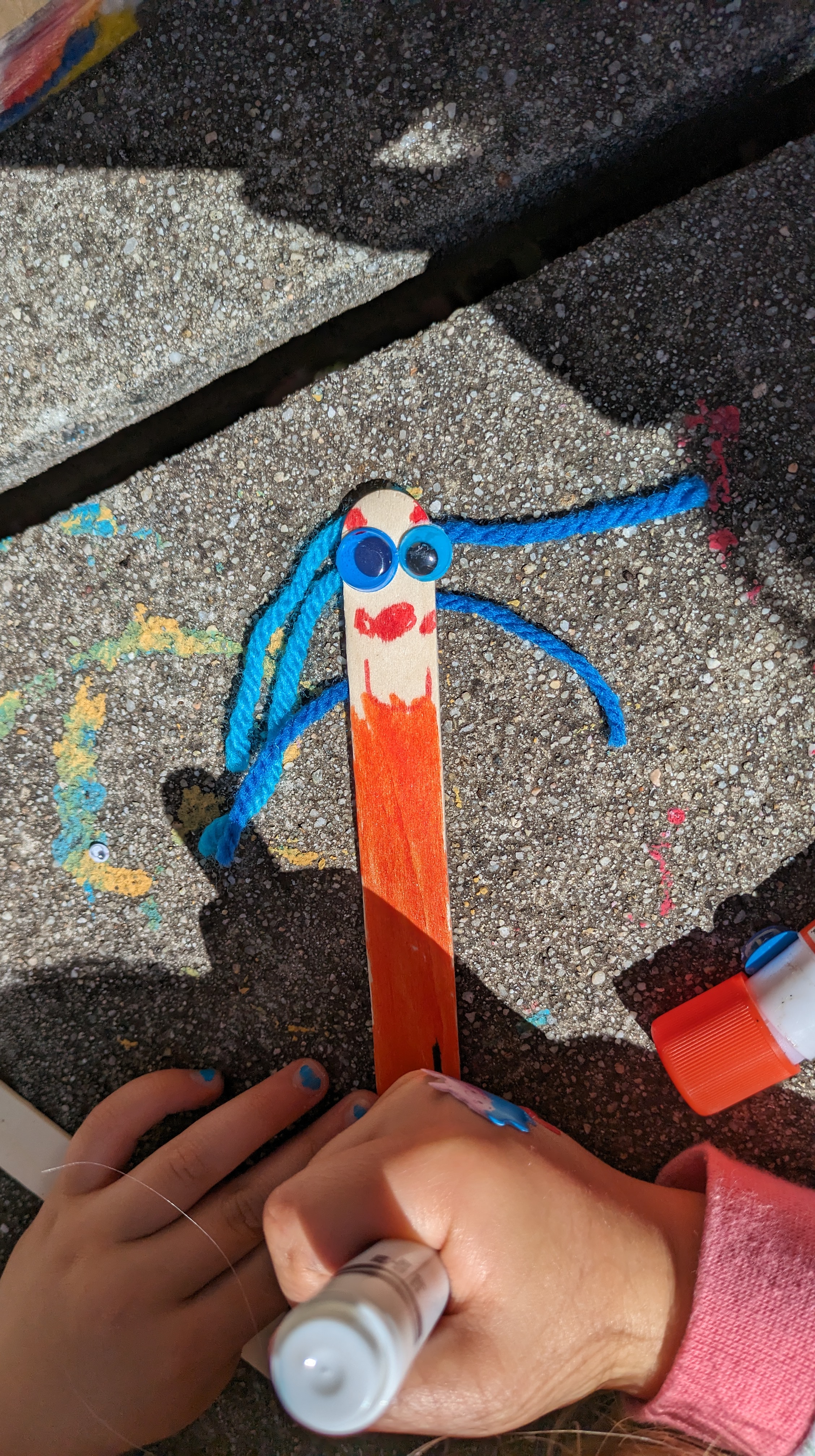 Before storytime, I folded a bunch of paper airplanes out of white paper. (I wanted an easy design, without a sharp point, so I used The Bumble design from HGTV). For the Stay & Play, I put out the pre-folded planes, markers, and dot markers, along with some blank paper in case anyone wanted to fold their own plane. The kids had a great time decorating their planes, and then testing them out in the park.