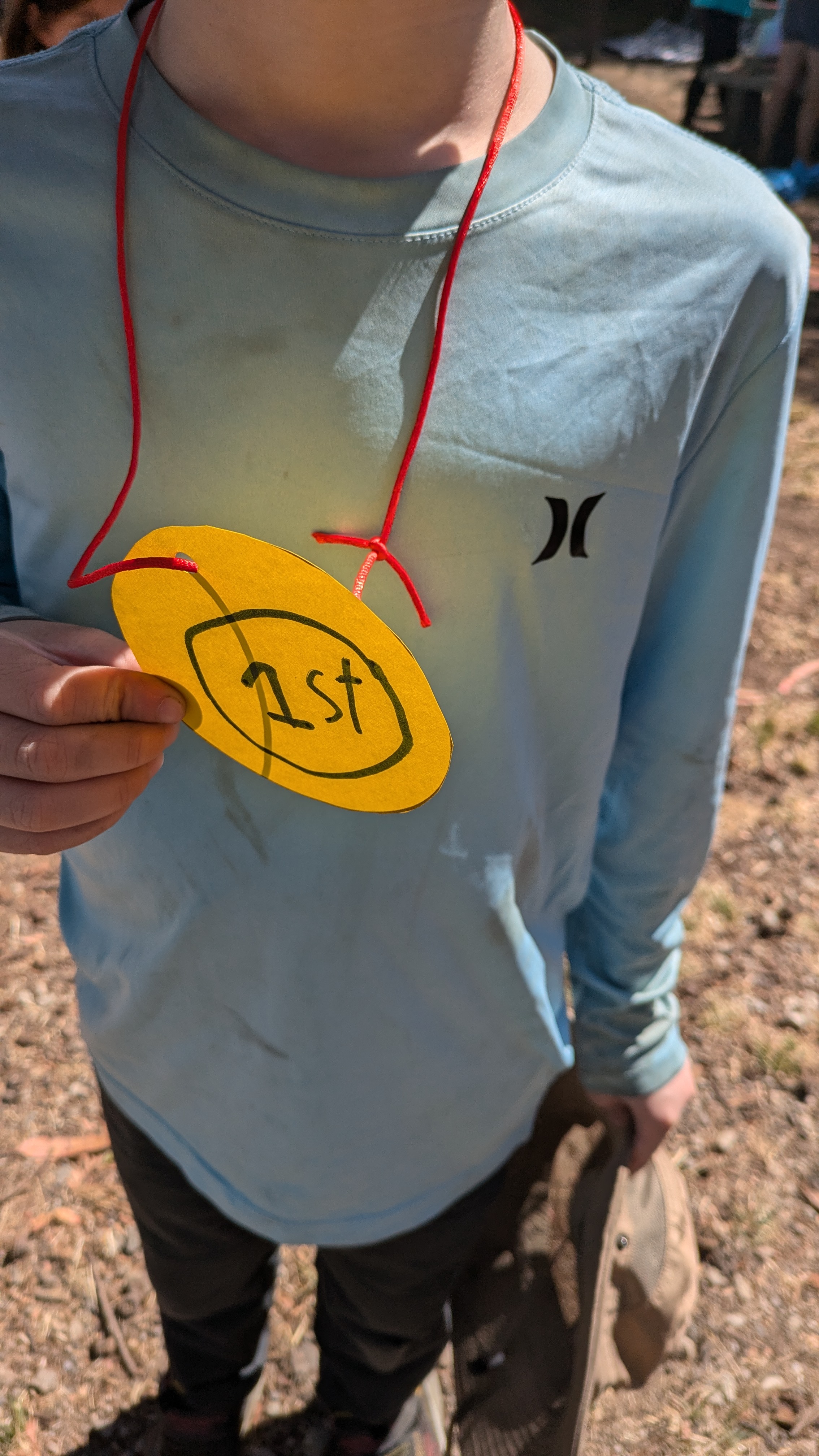For the Stay & Play, I put out the circles, cut pieces of cord, and markers. I told the kids they could make themselves a medal for whatever activity they would like to win a medal in: running, eating ice cream, etc.