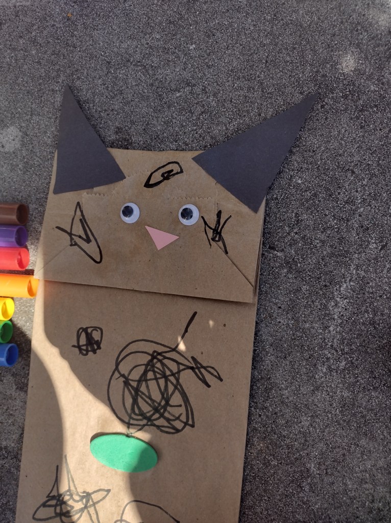 I got this idea from the Ann Arbor Library District web site. I had precut different shapes for ears out of construction paper (triangles for cats, ovals for dogs and bunnies, circles for mice). For the craft, I put out paper lunch bags for each child, along with the ears, some gluesticks, markers, googly eyes, and some foam shapes. One thing I love about the stay & play crafts is that a lot of the caregivers end up collaborating on the project, especially the ones with toddlers and preschoolers, and they all really seem to enjoy it.